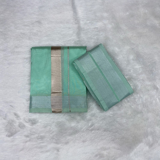 HORAD Premium Art Silk M.L.Green Dhoti + Angavastram (9X5)
