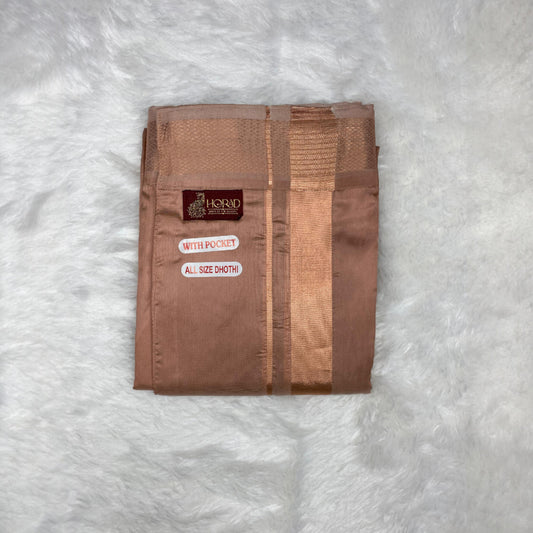 Horad Premium Art Silk Copper Shirt + Cream Dhoti + Angavastram