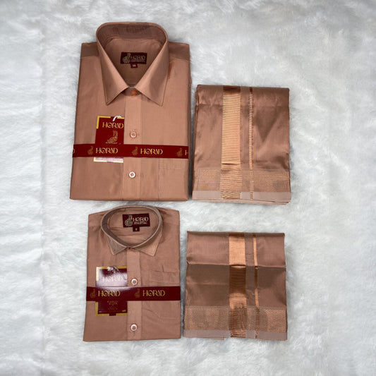 Horad Premium Art Silk Dad and Son Copper Shirt + Dhoti