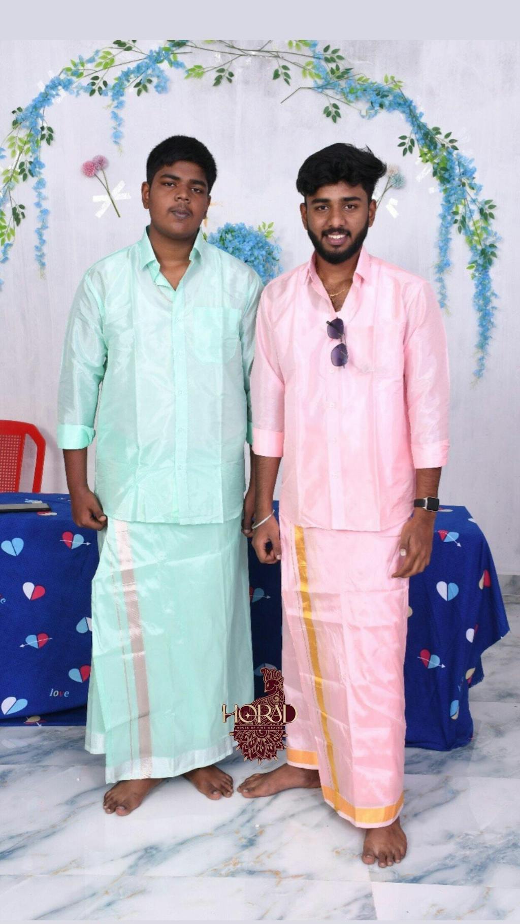 Horad Premium Art Silk Petal Pink Shirt +Dhoti