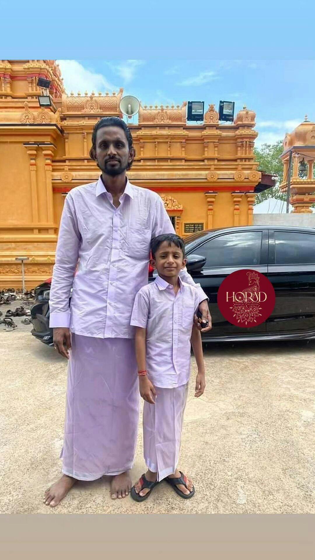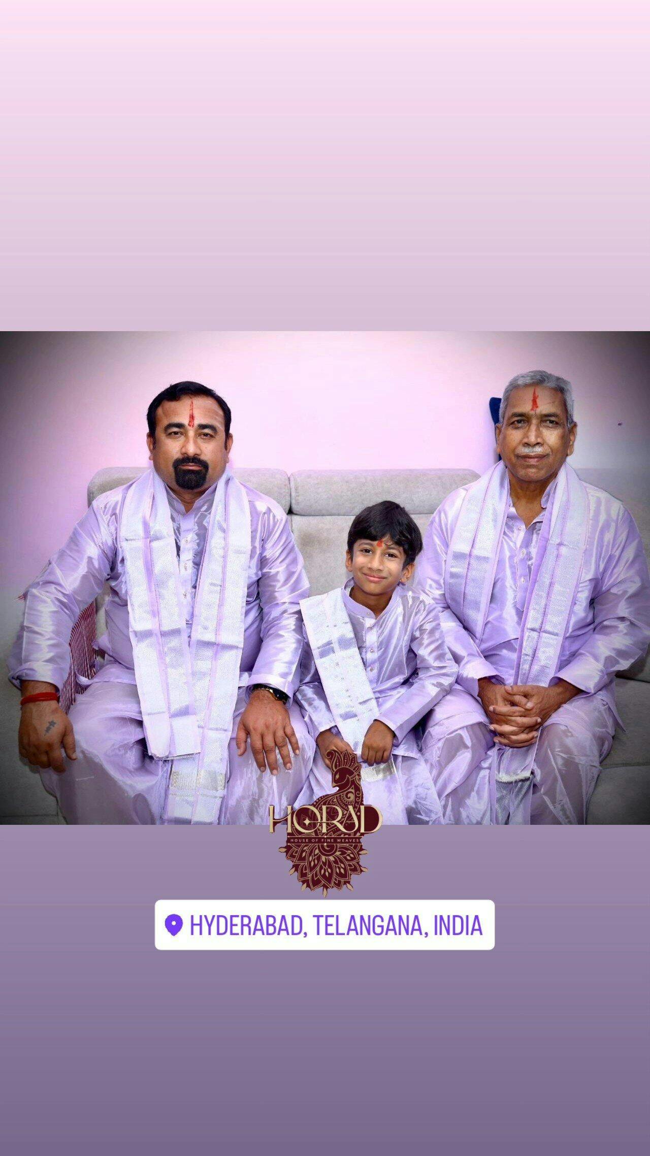 Horad Premium Art Silk Dad and Son Lavender Shirt + Dhoti + Angavastram