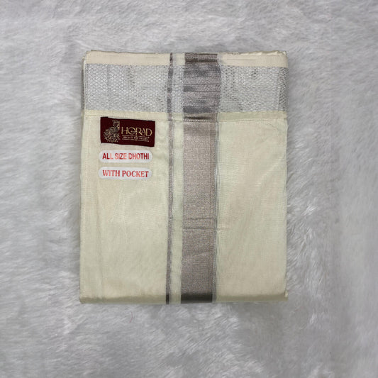 Horad Premium Art Silk Dad and Son Steel Grey Shirt + Cream with Silver Welcro Dhoti + Angavastram