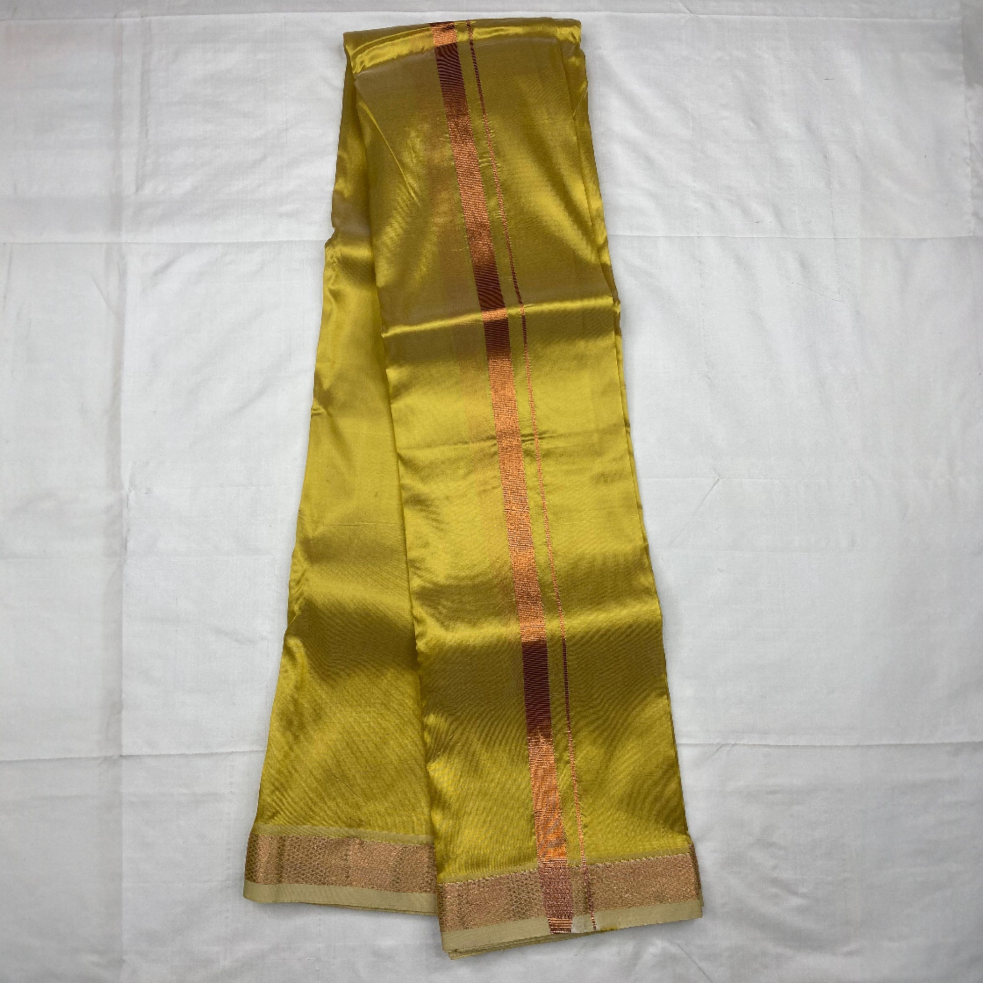 HORAD Art Silk Dark Gold Shirt Material + Copper Zari Dhoti
