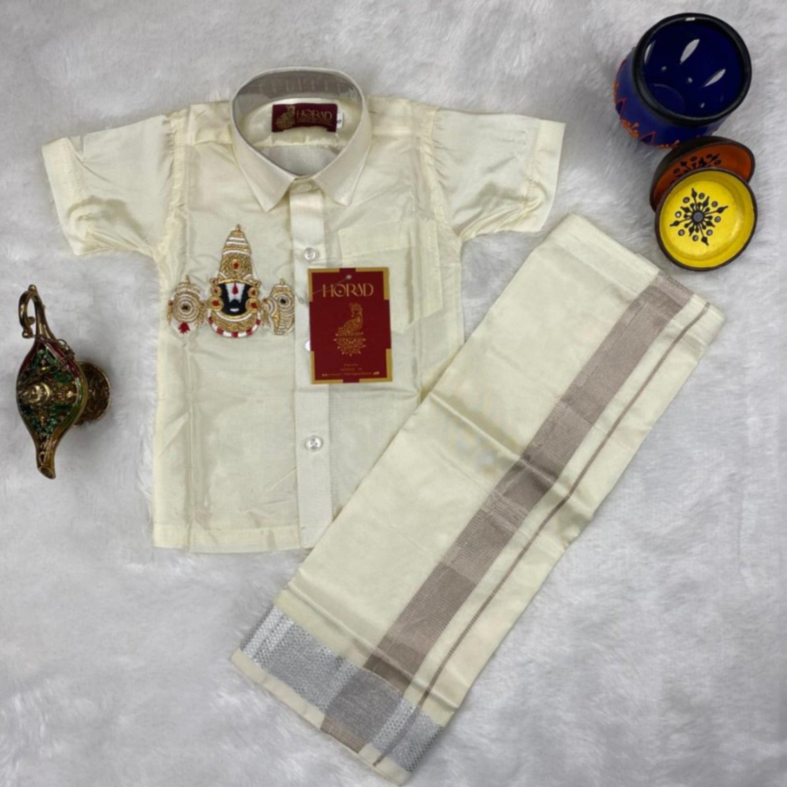 Horad Premium Art Silk Cream Balaji Embroidery Kids Set