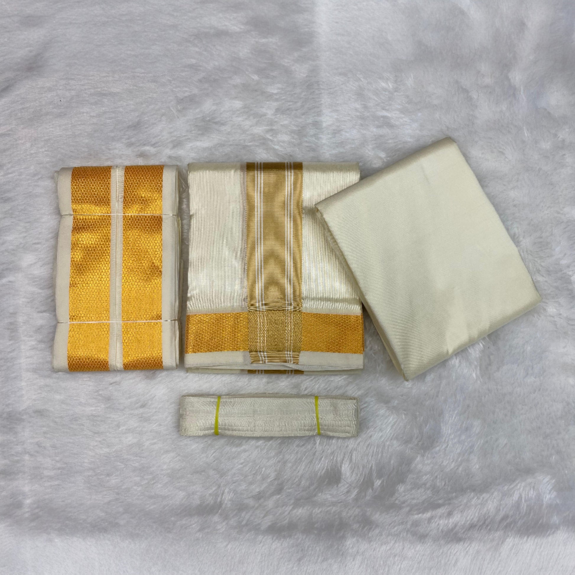 - This product only contains one Dhoti + Shirt Material + Angavastram (Folded) + Welcro Belt