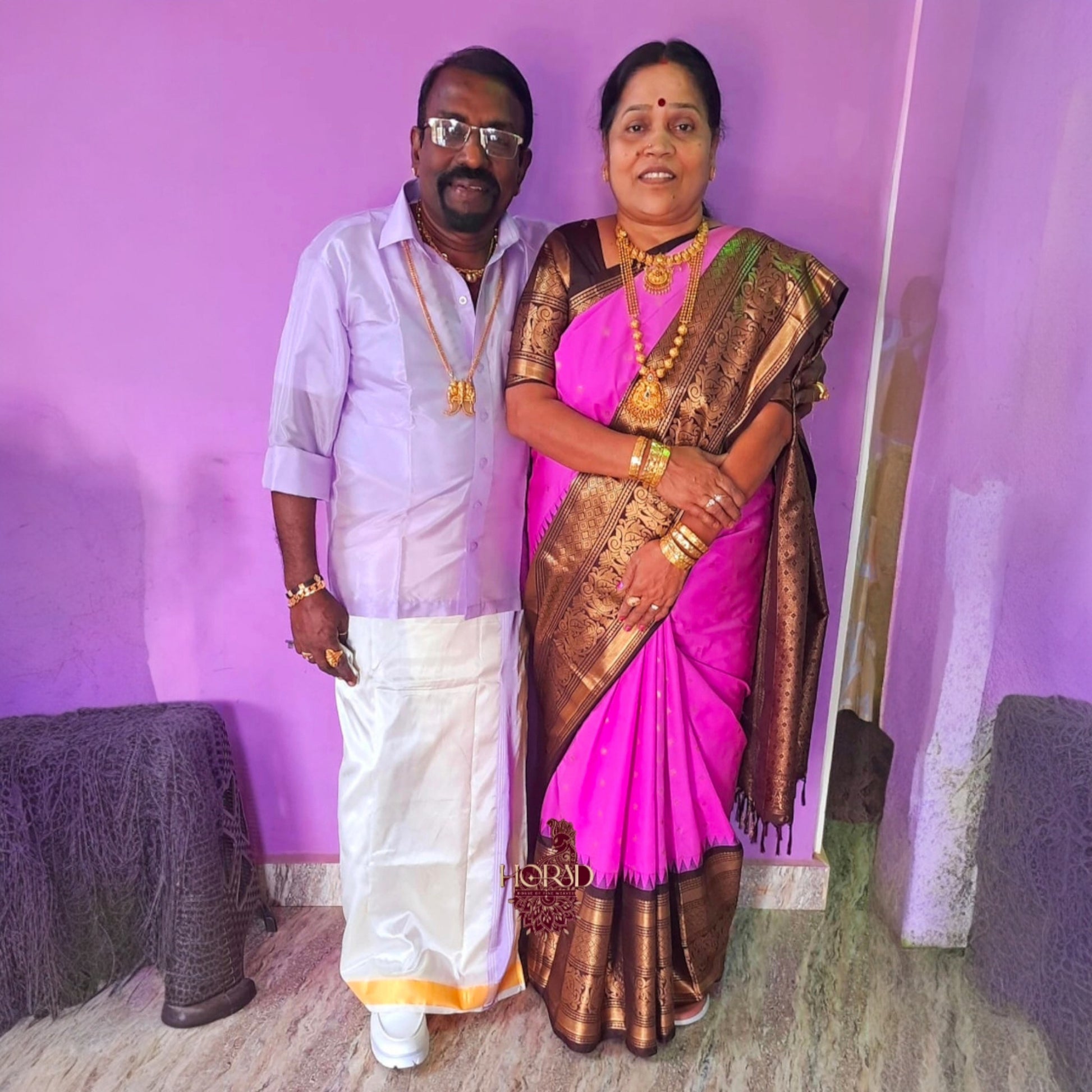 Horad Premium Art Silk Lavender Shirt + Cream with Lavender+Gold Border Dhoti