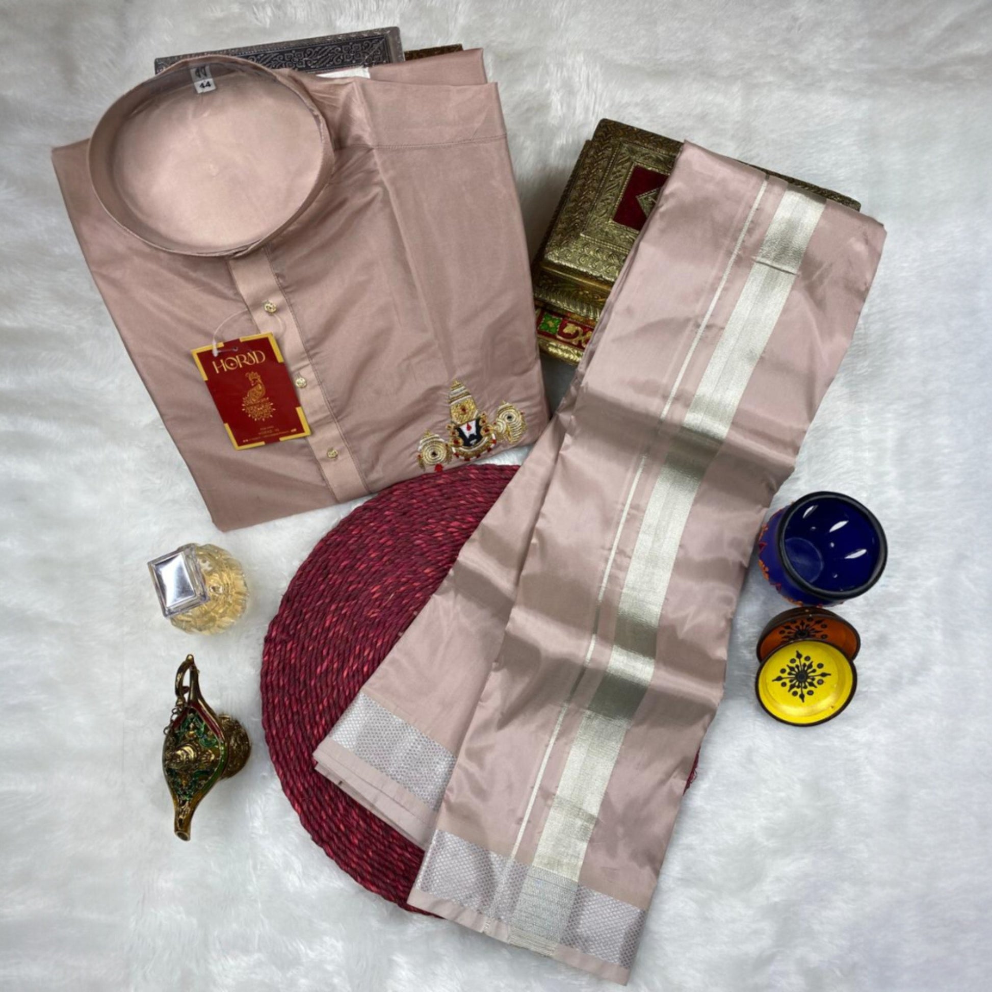 Horad Premium Art Silk Sandstone Balaji Embroidery Short Kurta + Dhoti