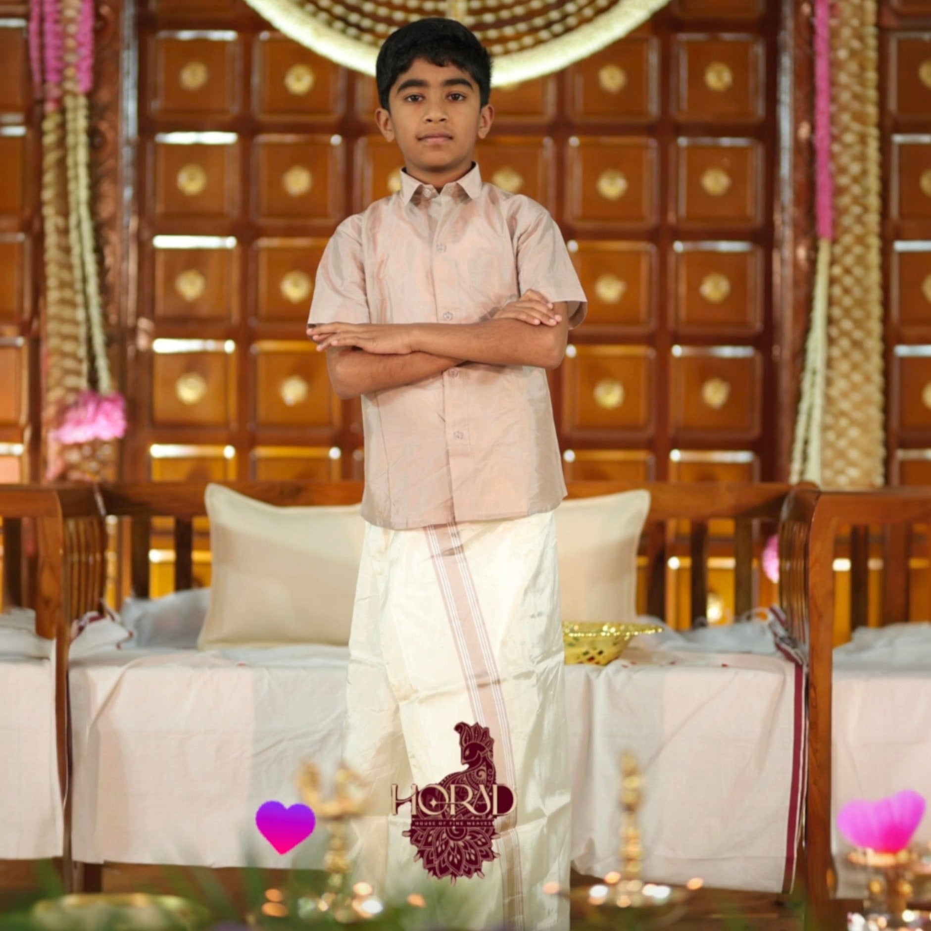 Horad Premium Art Silk Sandstone with Cream Kids set