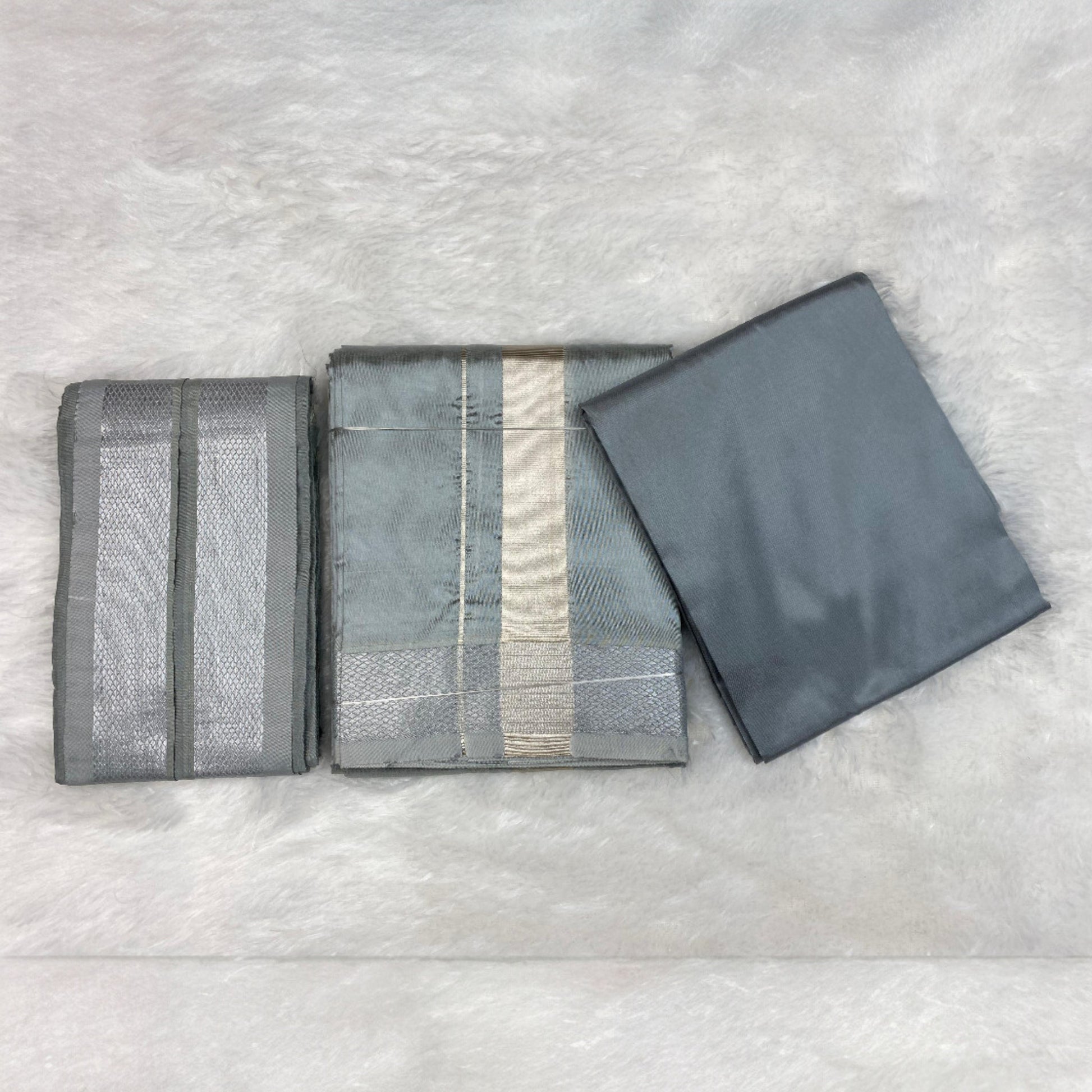 HORAD Premium Art Silk Steel Grey Dhoti with Shirt Material + Angavastram