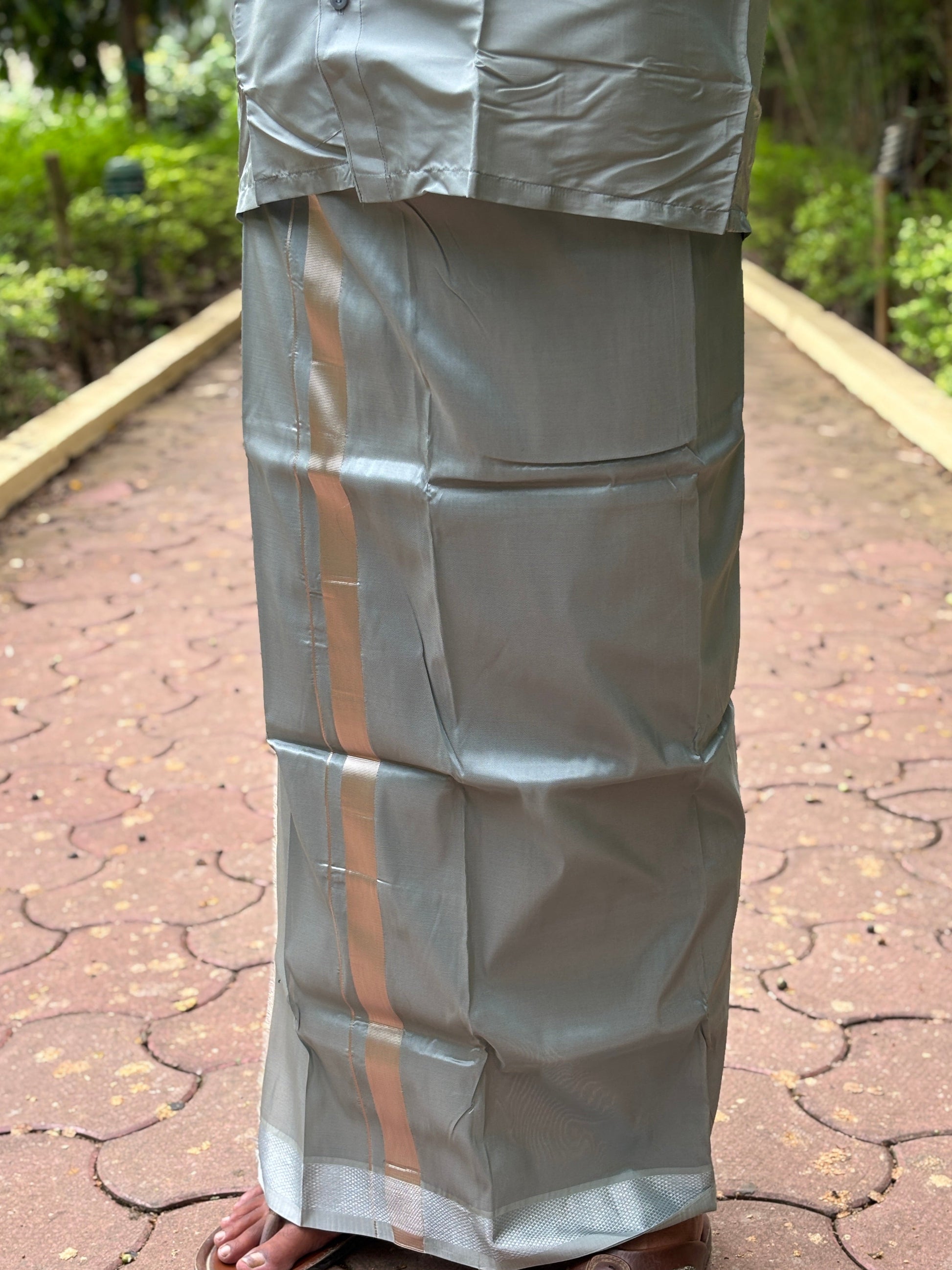 Horad Premium Art Silk Steel Grey Shirt + Dhoti