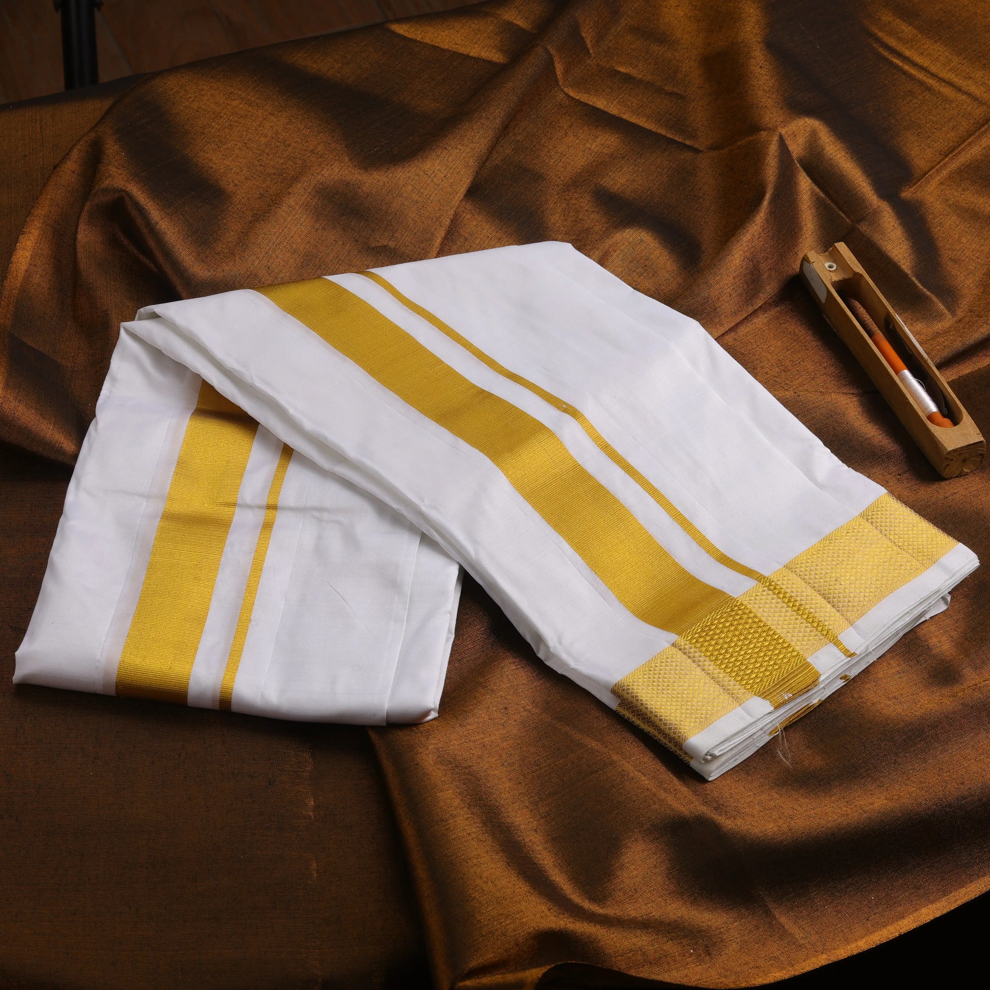 Horad Tradition Pure Silk Half White 1.75” Dhoti (8X4)